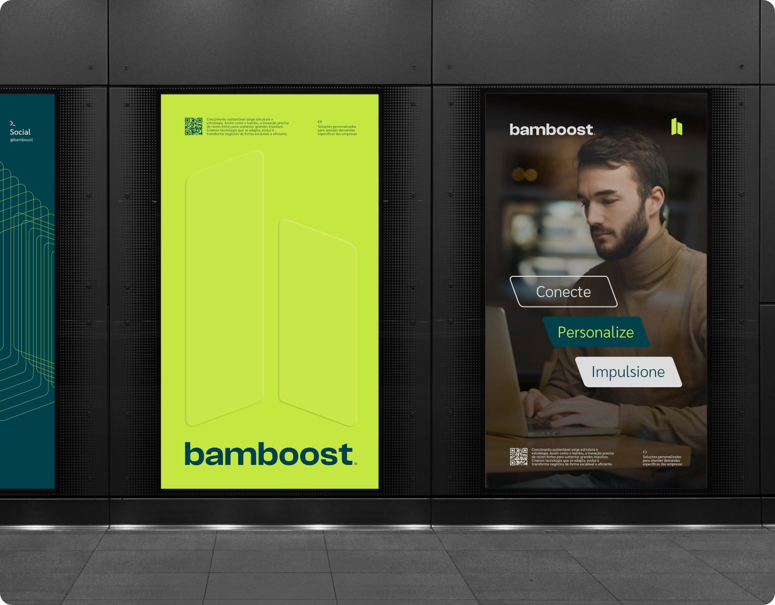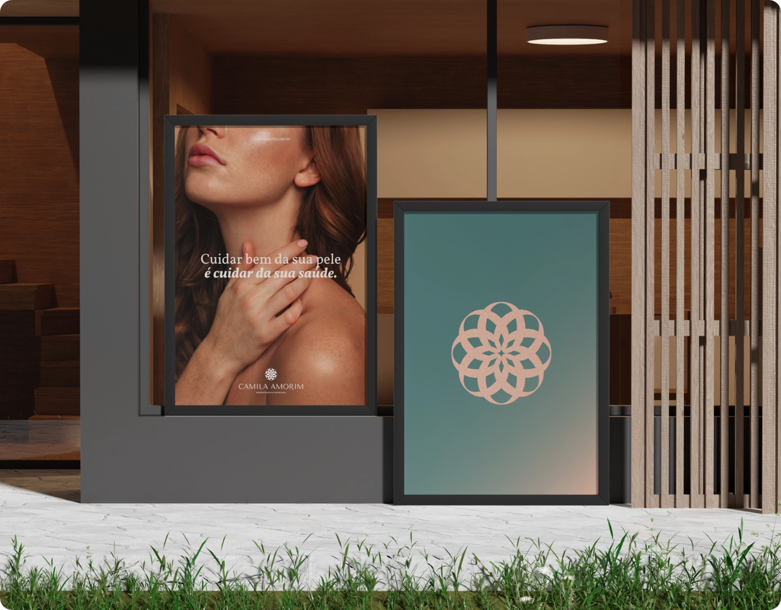 Na fase de identidade visual completa, ampliamos o universo da marca: elementos de apoio, grade e composições, hierarquia visual, tom de voz e exemplos reais de aplicação demonstram como a marca se comportará no dia a dia.