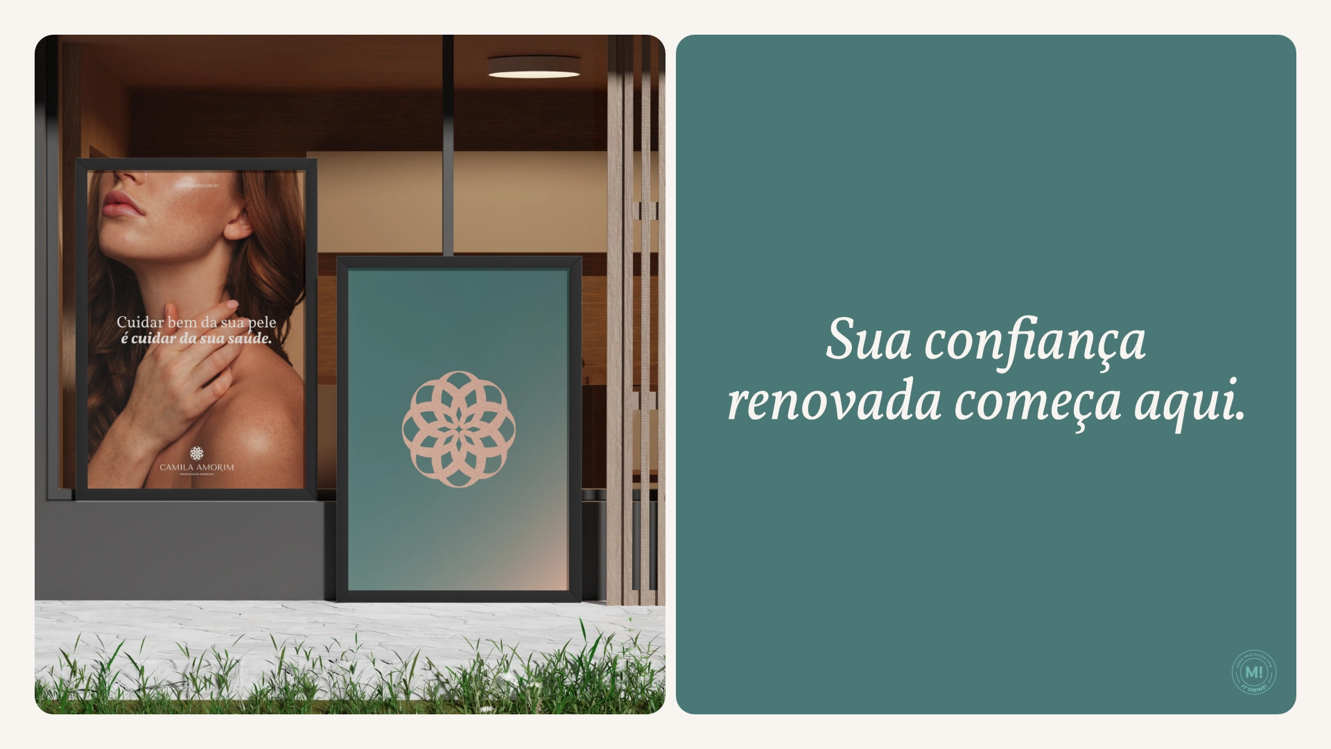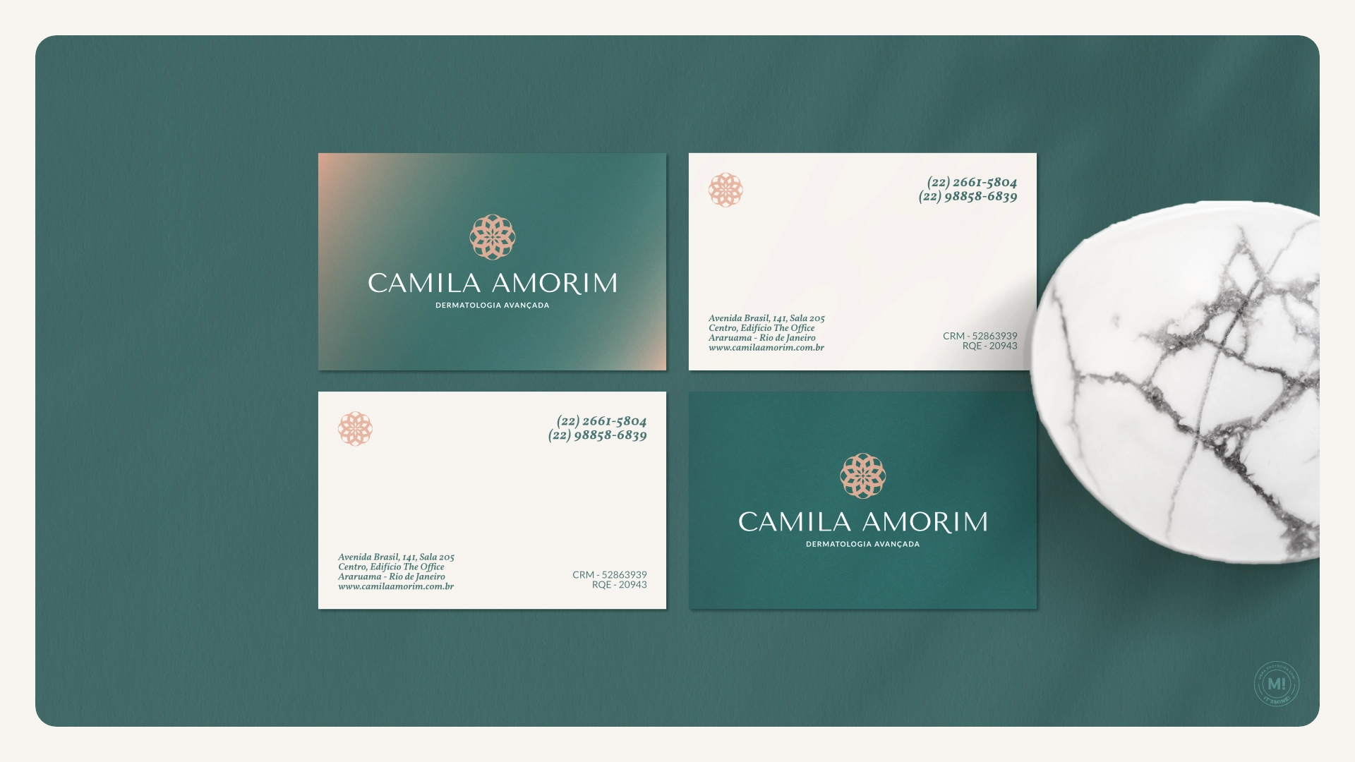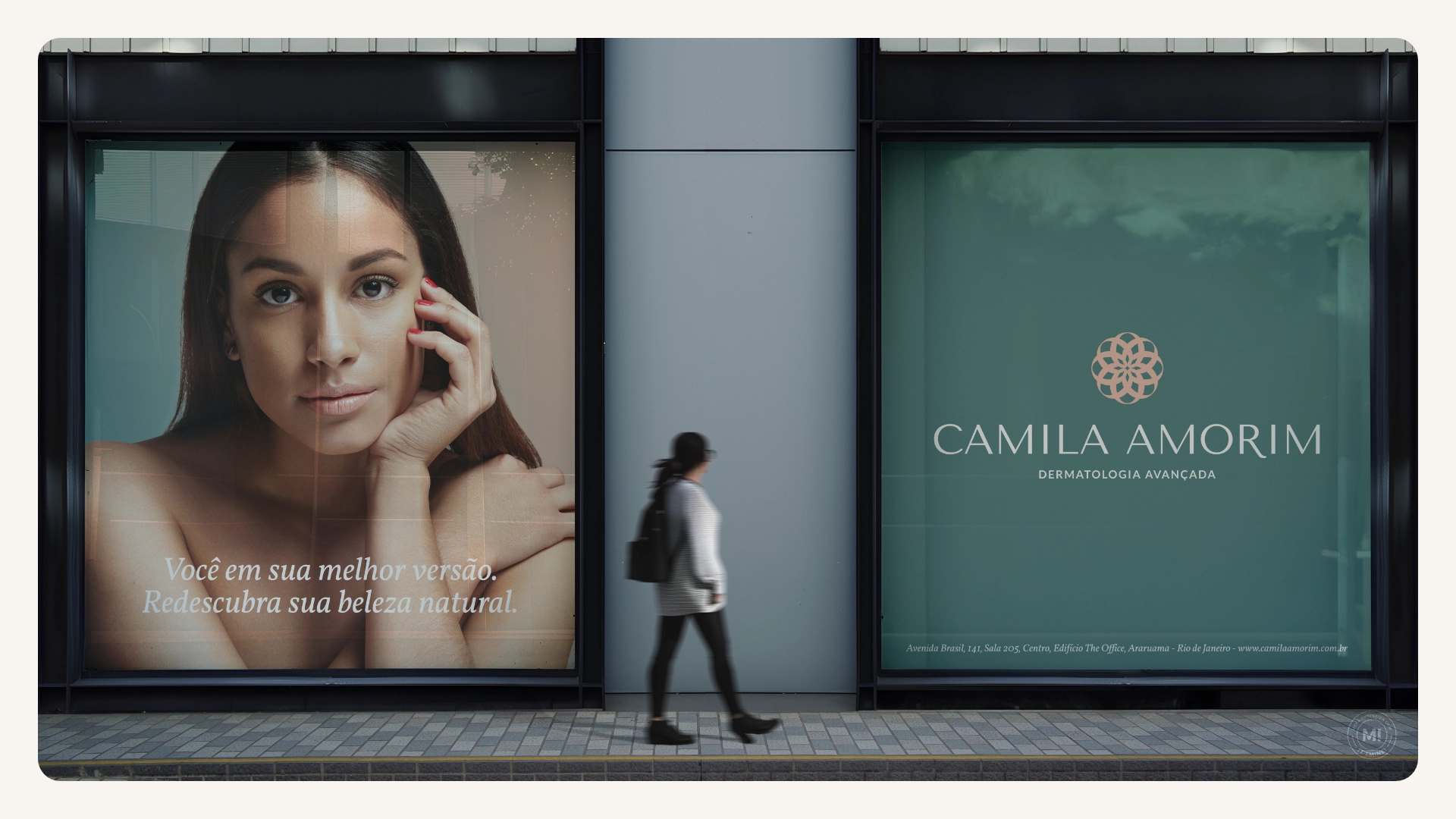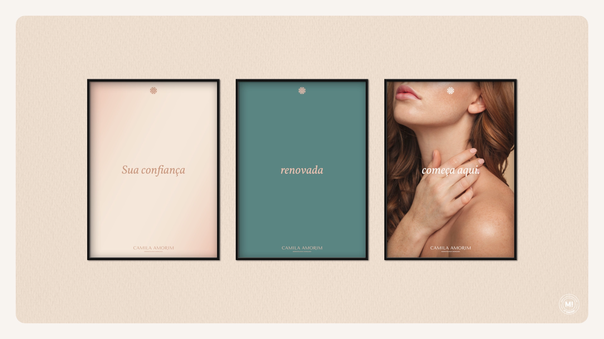 A criação da marca da Dra. Camila Amorim foi desenvolvida para refletir seu propósito: oferecer cuidado dermatológico personalizado e humanizado, que promove bem-estar físico e emocional. O projeto traduziu os valores de conexão, amor e autoridade em uma identidade visual sensível e elegante. O logotipo combina contornos suaves e modernos para transmitir acolhimento e profissionalismo, enquanto a tipografia transmite leveza e sofisticação. O símbolo nasce da união de três conceitos: o elo (conexão profunda com cada paciente), o amor (presente no próprio sobrenome) e a coroa (símbolo de força, realeza e conquista pessoal). Essa forma fluida, com espessuras variadas, conecta harmonia e movimento, reforçando o caráter orgânico dos cuidados da Dra. Camila. A paleta combina tons quentes acolhedores e nuances nobres, criando um equilíbrio entre proximidade e autoridade. O resultado é uma marca atemporal, que estabelece laços empáticos, transmite credibilidade e reflete o poder transformador do cuidado dermatológico.
