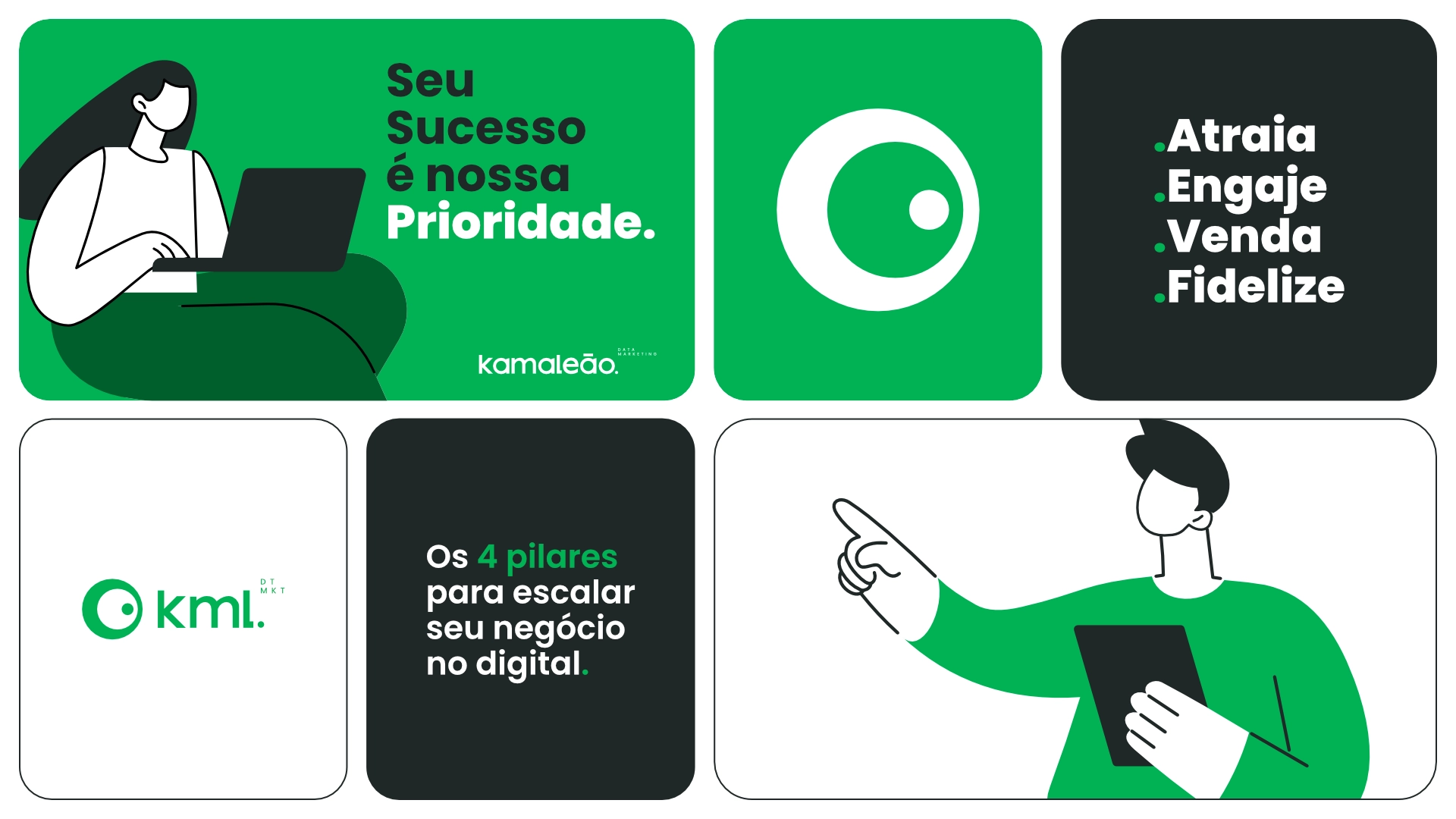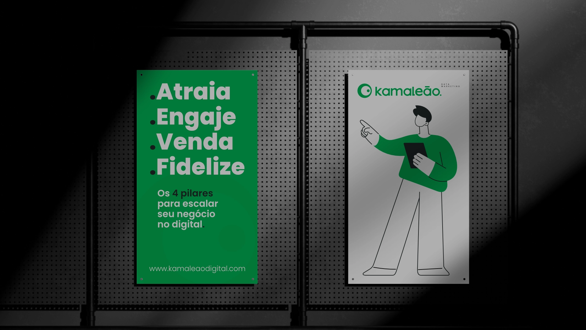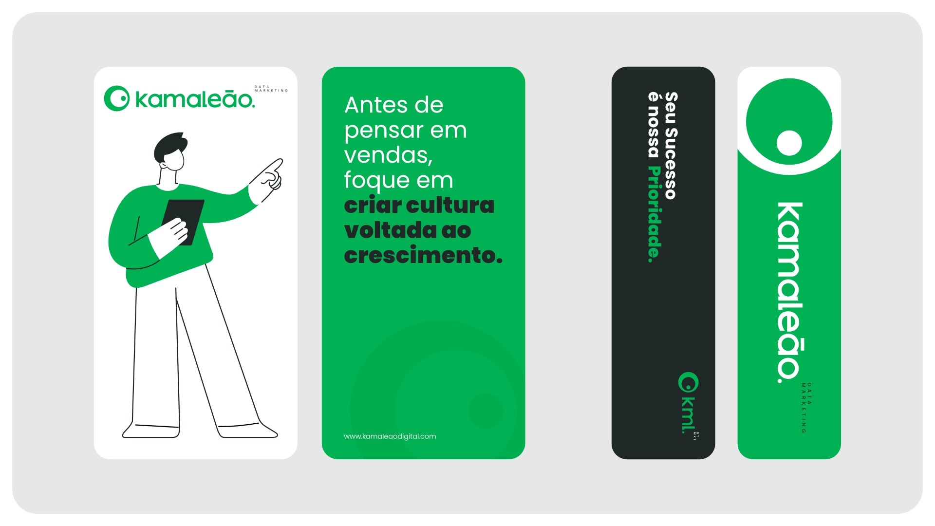 A marca da Kamaleão Data Marketing foi criada para expressar seu posicionamento como agência de performance digital estratégica e adaptável. A identidade visual nasceu da a metáfora do camaleão — representando capacidade de adaptação, visão perspicaz e agilidade diante de cenários dinâmicos. O símbolo, inspirado no olhar do camaleão, reforça vigilância, inteligência de dados e foco em oportunidades sutis do mercado digital. A tipografia moderna e legível transmite profissionalismo e acessibilidade, alinhando-se aos valores de clareza e eficiência. A paleta explora contrastes entre estabilidade e energia, traduzindo confiança com um toque de ousadia. O sistema visual inclui grafismos e elementos moduláveis que se adaptam facilmente a aplicações digitais, relatórios e apresentações. O resultado é uma identidade estratégica e dinâmica, que posiciona a Kamaleão Data Marketing como parceira analítica, flexível e orientada a resultados.