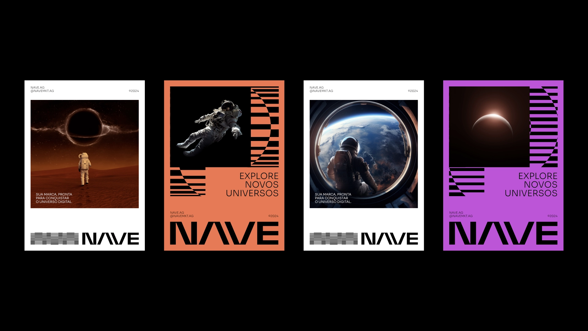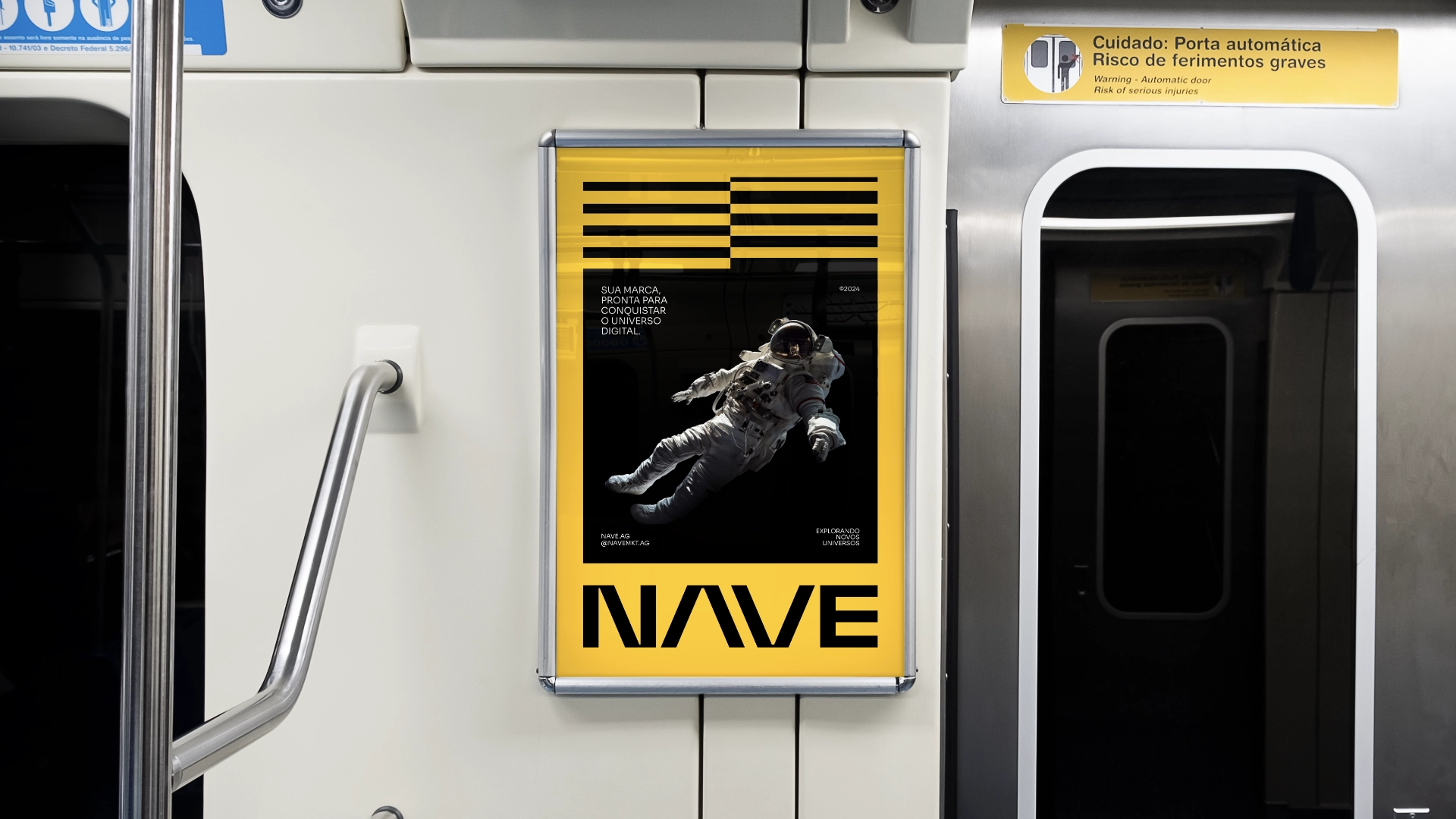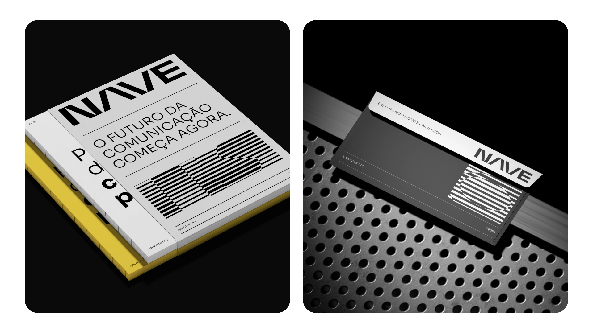 O rebranding da NAVE foi desenvolvido para refletir sua evolução como agência de marketing e comunicação voltada ao crescimento estratégico de pequenas e médias empresas. A nova identidade visual nasce da união entre propósito, inovação e clareza, reposicionando a NAVE como parceira de negócios que simplifica a comunicação e entrega resultados concretos. O logotipo traduz a essência do arquétipo do Explorador: ousado, visionário e em constante movimento. A tipografia moderna e robusta equilibra acessibilidade e autoridade, enquanto a paleta de cores vibrantes reforça energia, diversidade e tecnologia. O sistema visual foi pensado para expressar dinamismo e expansão, mantendo consistência em todos os pontos de contato. A NAVE agora comunica com precisão sua promessa: explorar novos universos e levar seus clientes a novos patamares de crescimento.