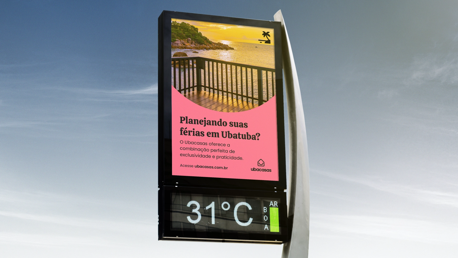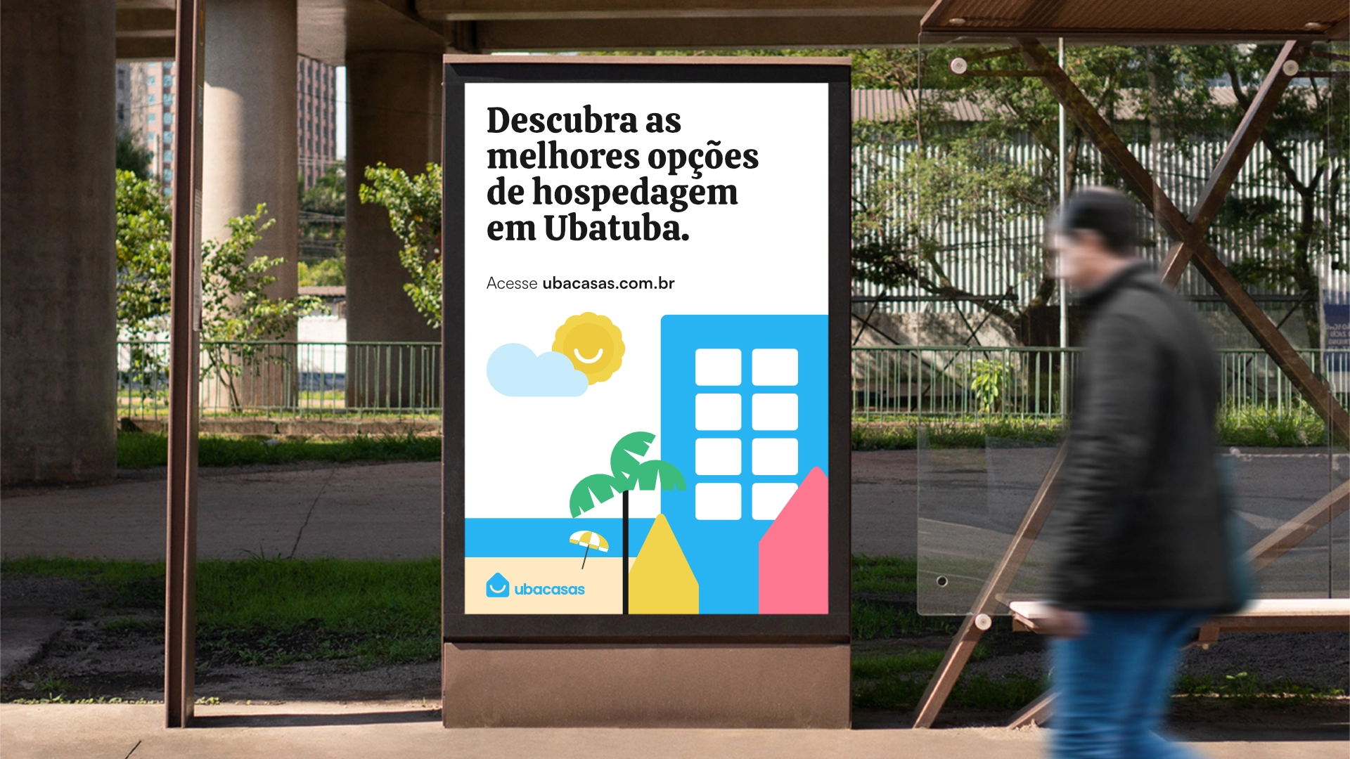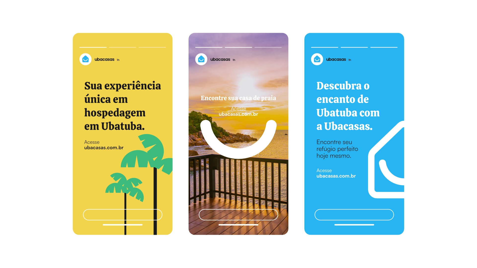 A criação da marca da Ubacasas teve como objetivo comunicar a essência acolhedora e espontânea de um portal de hospedagem exclusiva em Ubatuba. O projeto nasceu da necessidade de conectar viajantes a imóveis cuidadosamente selecionados, realçando valores como confiança, diversão e autenticidade local. O símbolo foi concebido a partir da fusão de uma casa com um sorriso, capturando a ideia de abrigo e alegria ao encontrar o lugar ideal para relaxar na praia. A tipografia em caixa baixa e peso semibold transmite modernidade, acessibilidade e presença sólida, equilibrando leveza com credibilidade. A paleta de cores e o sistema visual reforçam uma experiência positiva em cada ponto de contato — do site à comunicação com proprietários certificados. Essa identidade reflete a marca como um facilitador de estadias memoráveis, reforçando sua relevância regional e proximidade com o público.