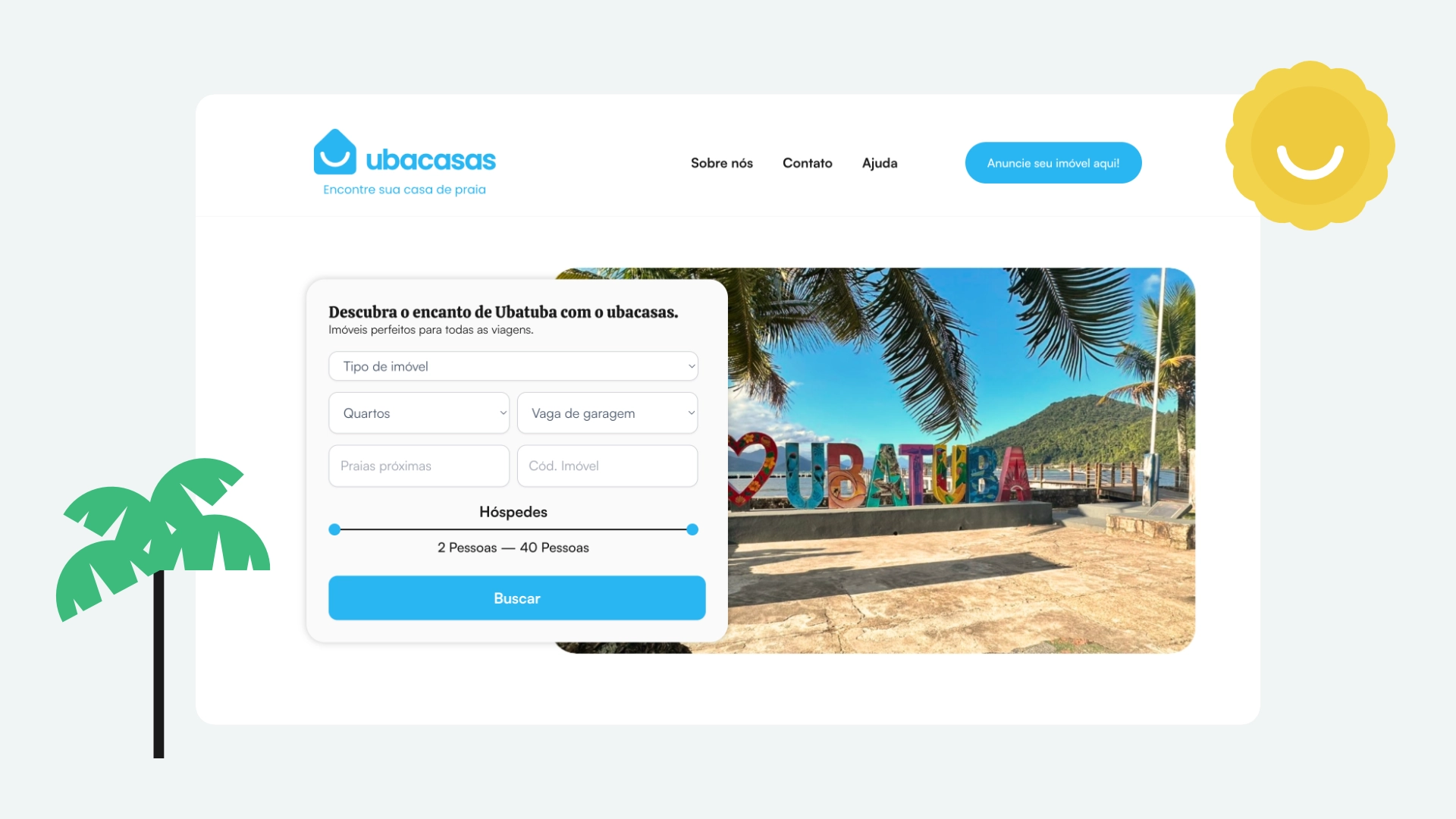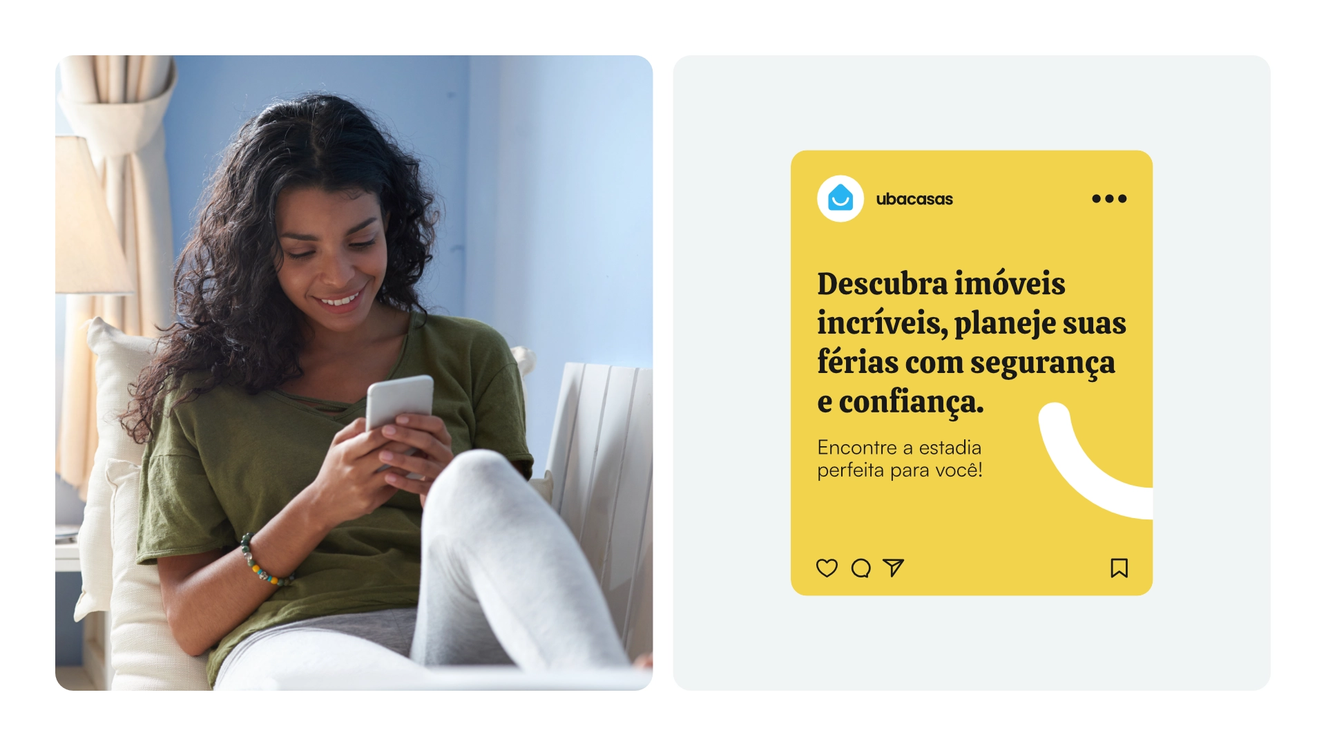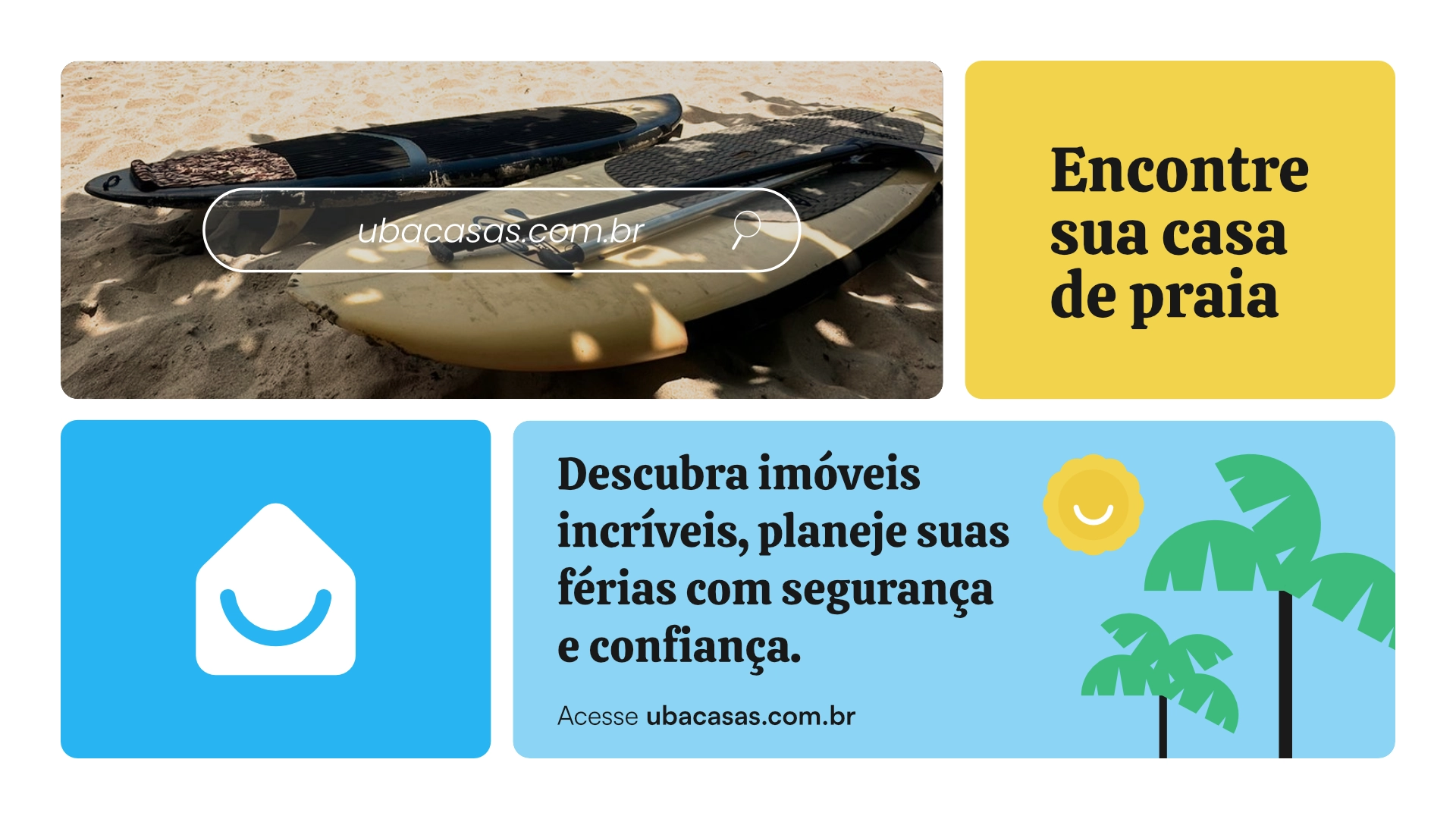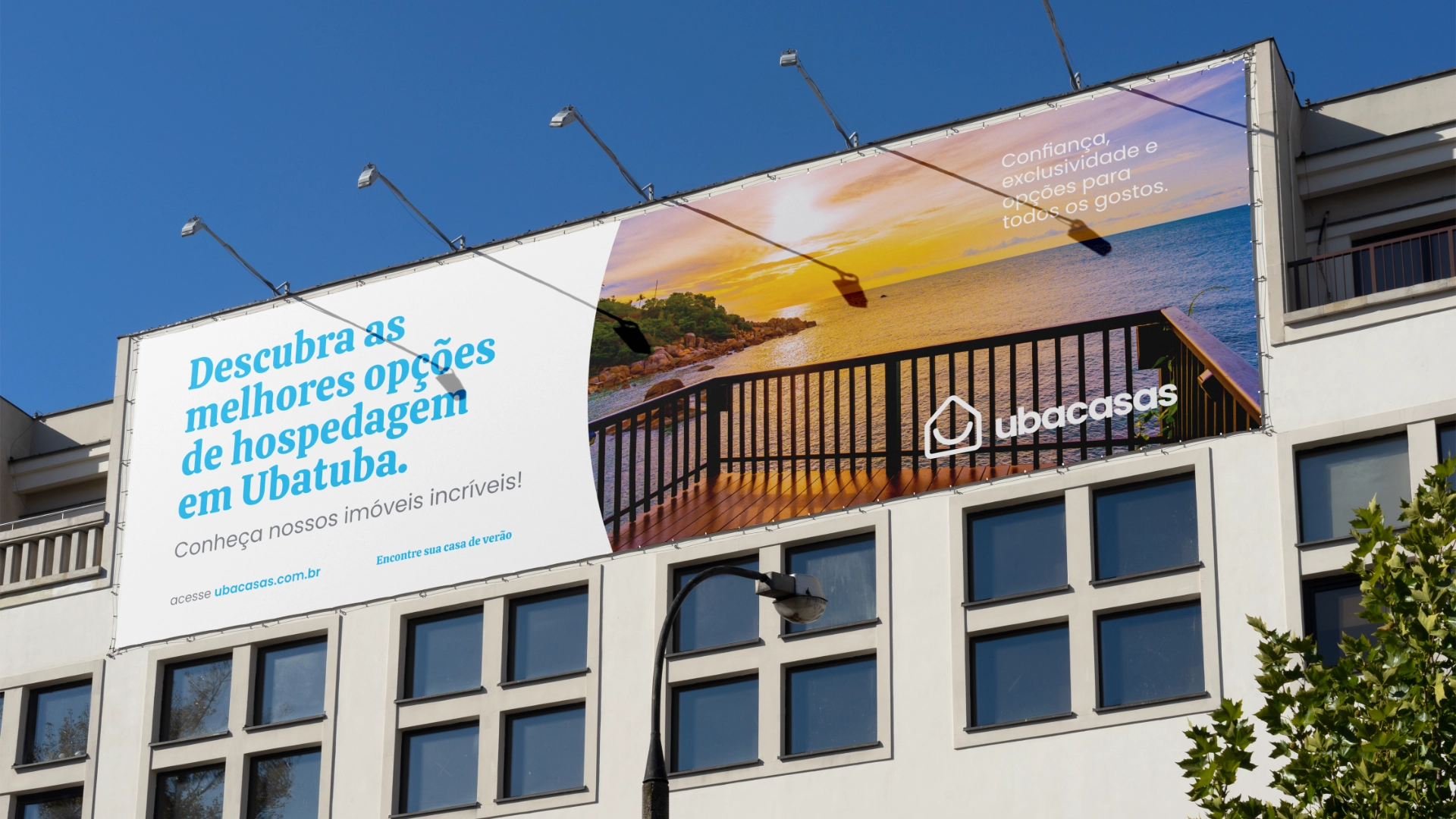 A criação da marca da Ubacasas teve como objetivo comunicar a essência acolhedora e espontânea de um portal de hospedagem exclusiva em Ubatuba. O projeto nasceu da necessidade de conectar viajantes a imóveis cuidadosamente selecionados, realçando valores como confiança, diversão e autenticidade local. O símbolo foi concebido a partir da fusão de uma casa com um sorriso, capturando a ideia de abrigo e alegria ao encontrar o lugar ideal para relaxar na praia. A tipografia em caixa baixa e peso semibold transmite modernidade, acessibilidade e presença sólida, equilibrando leveza com credibilidade. A paleta de cores e o sistema visual reforçam uma experiência positiva em cada ponto de contato — do site à comunicação com proprietários certificados. Essa identidade reflete a marca como um facilitador de estadias memoráveis, reforçando sua relevância regional e proximidade com o público.